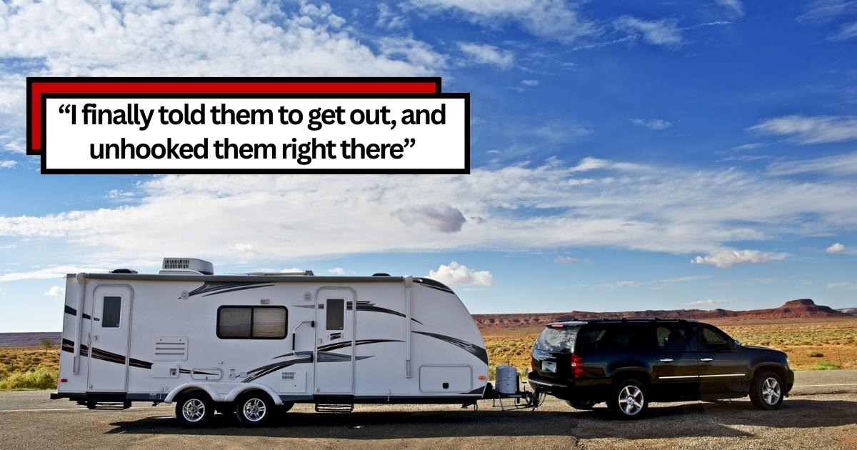 Once hooked up, he noticed that their vehicle was completely overloaded, which would ultimately impact their trip. Yet, he continued anyway…But what he heard the couple discussing on the way was nothing short of bizarre (and outright suspicious…). When finally reaching the destination of their intended RV park, the owner refuses to let them in…sparking a few ‘harsh phrases’ conversed between the couple and the owner. Let’s just say that park was the last place they’d be staying that day…So with no other options, the mover drove them towards the nearest gas station, unhooked their vehicle, and drove far, far away.
