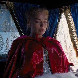 The comparisons to both sexy ’90s romantic dramas would point to Elordi being their Leonardo DiCaprio, but Robbie has a loftier analog. “I honestly think he’s our generation’s Daniel Day-Lewis,” she said of her Heathcliff, the book’s hulking, depressed, dashing love interest. The casting has stirred up debate because book readers have interpreted the character as a person of color due to Emily Brontë’s description of him as a “dark-skinned gypsy.” Robbie did not directly address the controversy, but she defended Elordi and emphasized the traditional (white) leading men cast before him. “I saw him play Heathcliff,” she told Vogue. “And he is Heathcliff. I’d say, just wait. Trust me, you’ll be happy. It’s a character that has this lineage of other great actors who’ve played him, from Laurence Olivier to Richard Burton and Ralph Fiennes to Tom Hardy.” Wuthering Heights has great expectations to live up to.